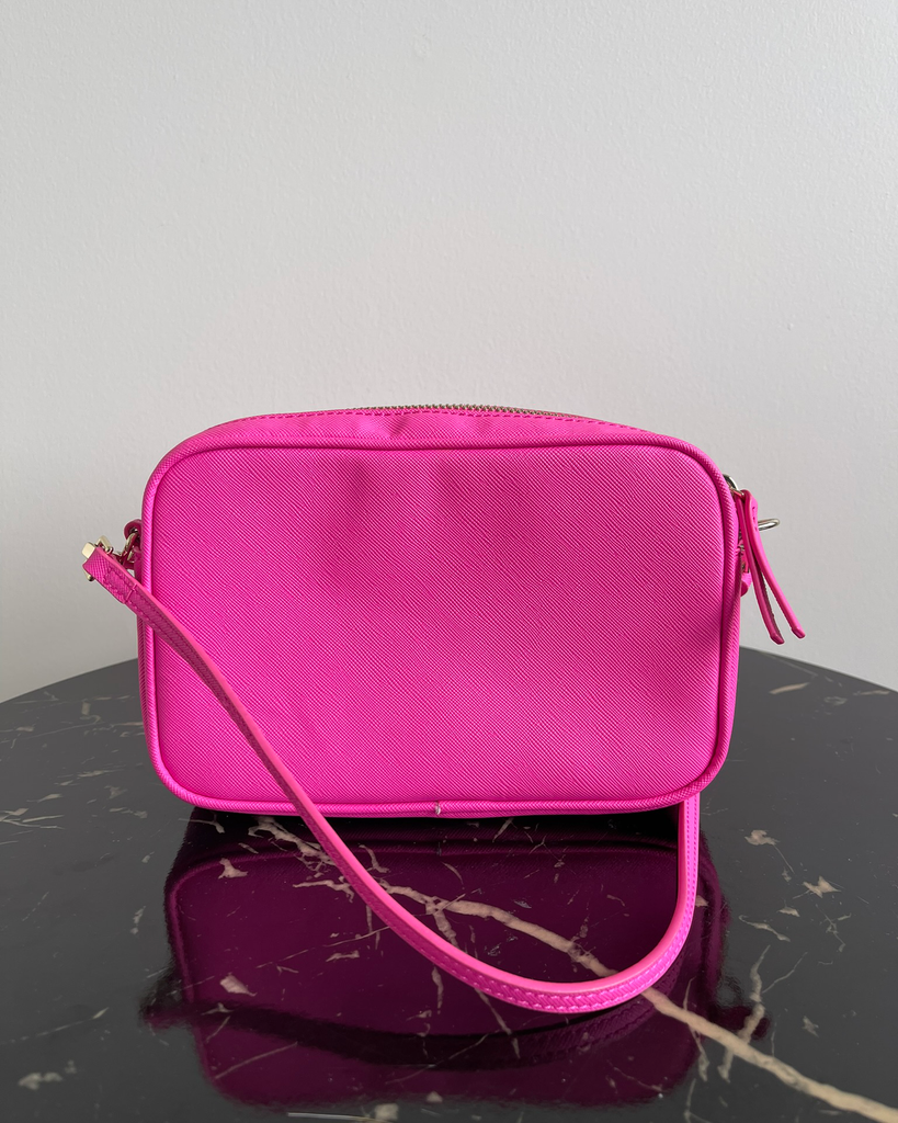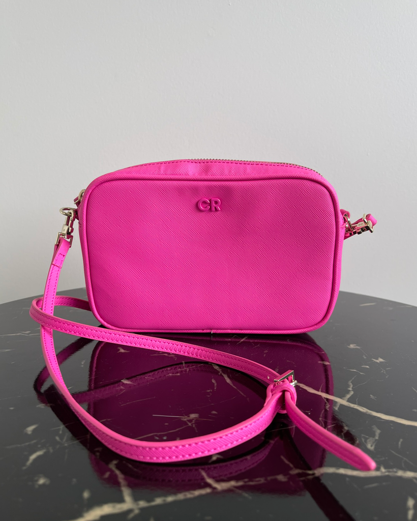 Vivid pink zip up cross body bag with slim adjustable strap from Country Road.