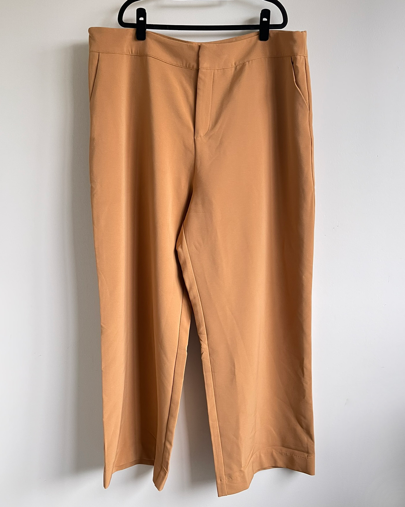 Brand new with tags Atmos & Here Jessica Tailored pants in Camel. These pants have a zip fly with two hook and eye clasps and a button at the top, and pockets at the hips.