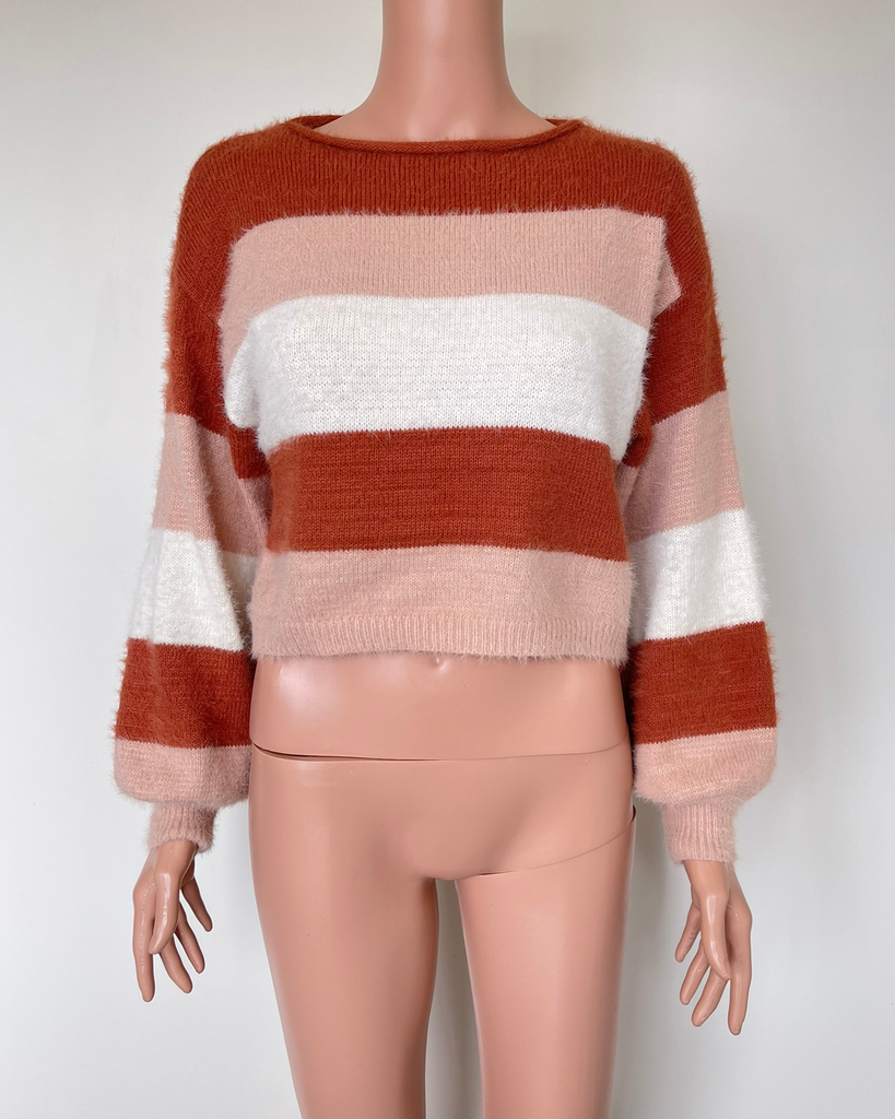 Brown and cream striped knit long sleeved top from Yours Truly.