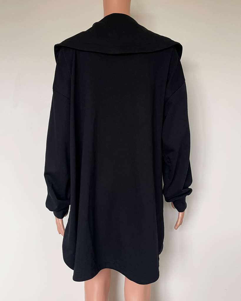 Black long sleeved lounge zip up jacket with pockets at the hips from Moke Apparel.