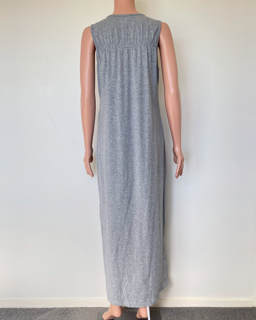 Grey stretch full length dress with gold sequins on the front from Augustine.