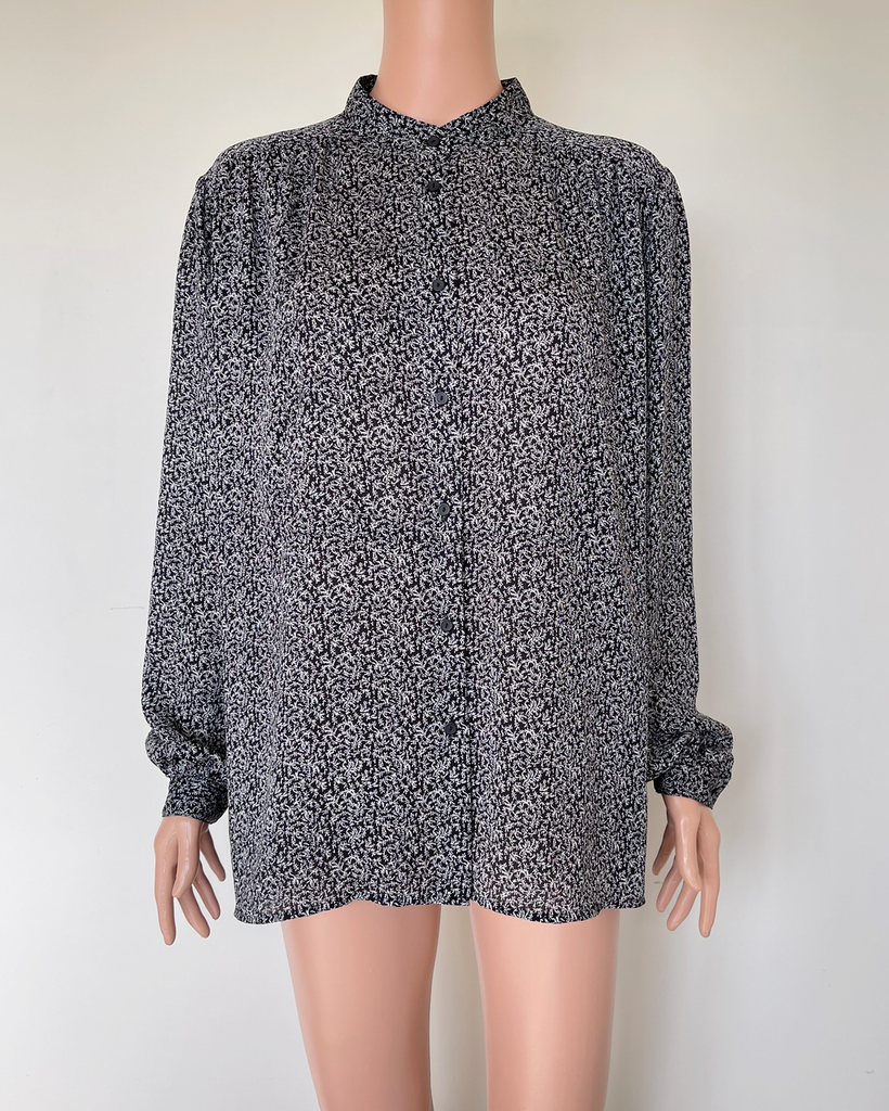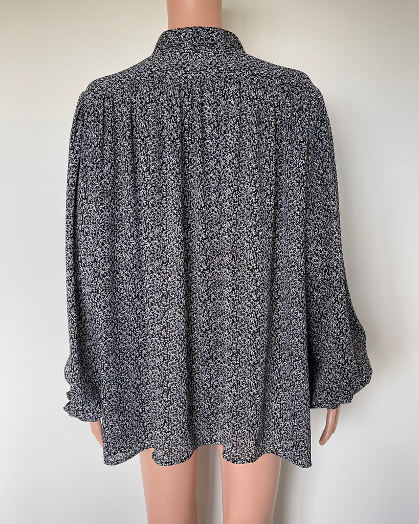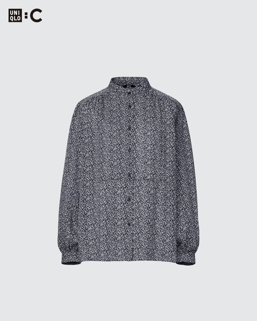 Black and white patterned button up long sleeved shirt from a collection by Claire Wright Keller with Uniqlo.